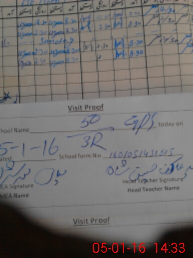 | School Visited by School Health & Nutrition Supervisor (No. of Visits) | 1 | Name1: | Shshbaz Hussain | Name2: | |