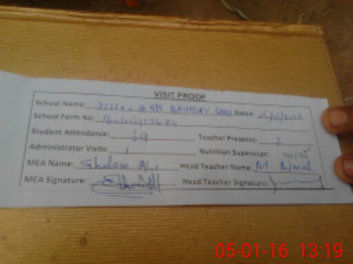| Attendance Register | Head Teacher | MEA with School | Visit Proof |
