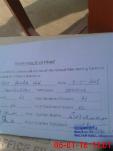 | EMIS Code: 38310203 | Name of School: GPS HINDAL KHEL | |||
