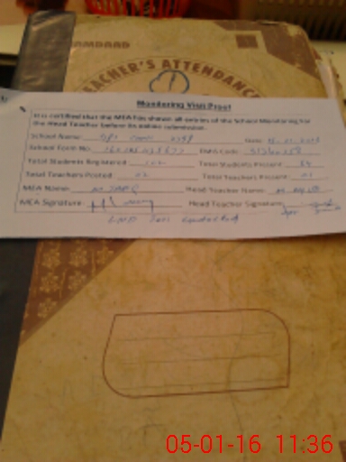 | Attendance Register | Head Teacher | MEA with School | Visit Proof |