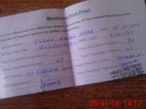 | Certified that this School was Inspected by the Undersigned MEA/DMO Today and the Information Stated Above is as Per Record. | |||||