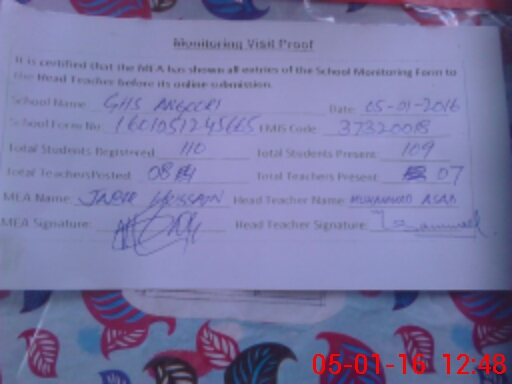 | Attendance Register | Head Teacher | MEA with School | Visit Proof |