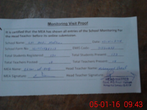 | Certified that this School was Inspected by the Undersigned MEA/DMO Today and the Information Stated Above is as Per Record. | |||||