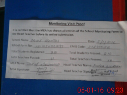 | Attendance Register | Head Teacher | MEA with School | Visit Proof |