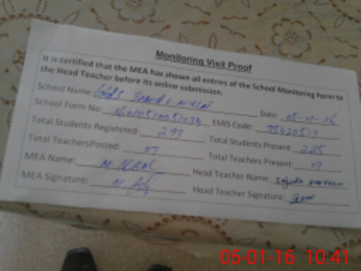 | EMIS Code: 35420517 | Name of School: GGES TAMIR-E-MILLAT MURIDKE | |||