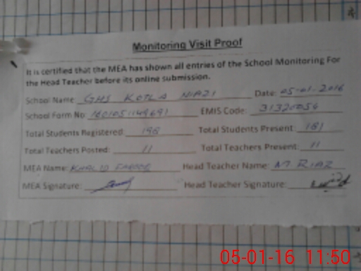| EMIS Code: 31320054 | Name of School: GHS KOTLA NIAZI | |||