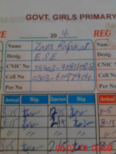 | Name: AI**** KH**** Designation: (School Headmaster's/Headmistress's) SST (PHY-MATH) Phone/Cell Number: 03**** |