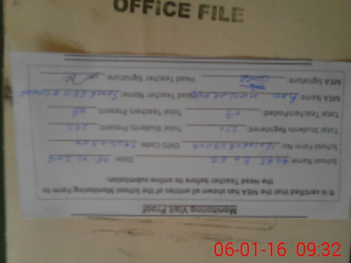 | Attendance Register | Head Teacher | MEA with School | Visit Proof |