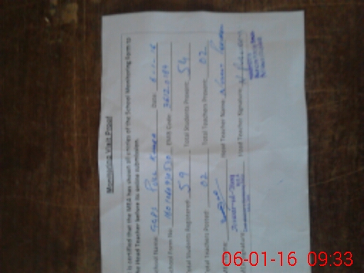 | Attendance Register | Head Teacher | MEA with School | Visit Proof |