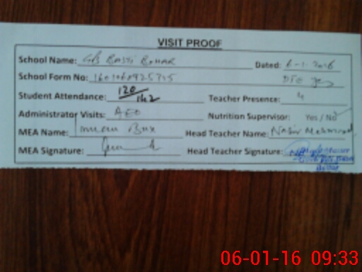 | Attendance Register | Head Teacher | MEA with School | Visit Proof |