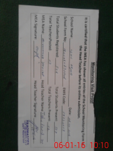 | Certified that this School was Inspected by the Undersigned MEA/DMO Today and the Information Stated Above is as Per Record. | |||||