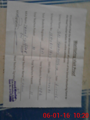 | Attendance Register | Head Teacher | MEA with School | Visit Proof |
