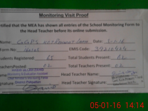 | Certified that this School was Inspected by the Undersigned MEA/DMO Today and the Information Stated Above is as Per Record. | |||||