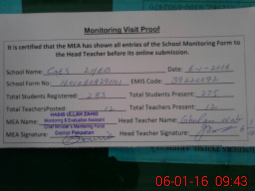 | Certified that this School was Inspected by the Undersigned MEA/DMO Today and the Information Stated Above is as Per Record. | |||||