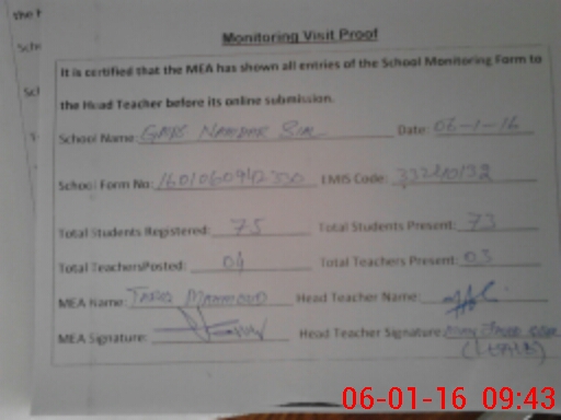 | EMIS Code: 33240132 | Name of School: GMPS NAMDAR SIAL | |||