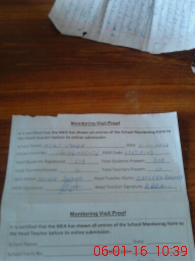 | Attendance Register | Head Teacher | MEA with School | Visit Proof |