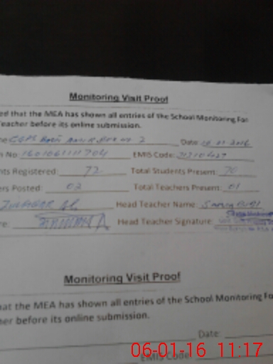 | Attendance Register | Head Teacher | MEA with School | Visit Proof |