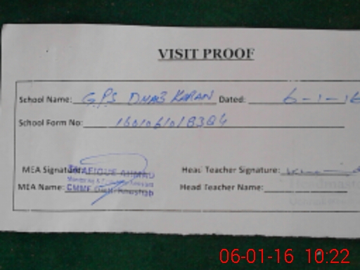| EMIS Code: 38240334 | Name of School: GPS DHAB KARAN | |||
