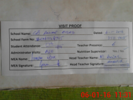 | Attendance Register | Head Teacher | MEA with School | Visit Proof |