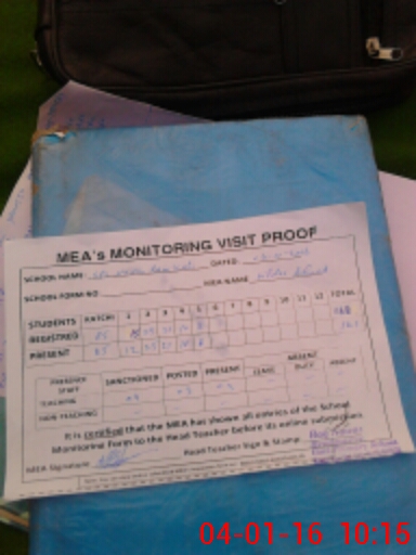 | Attendance Register | Head Teacher | MEA with School | Visit Proof |