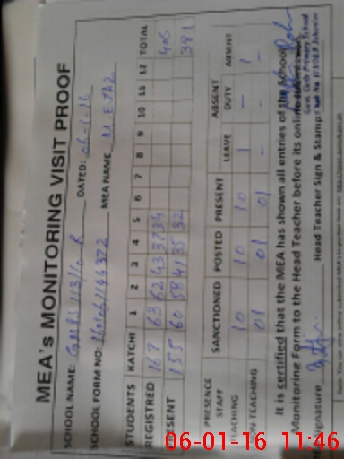 | Attendance Register | Head Teacher | MEA with School | Visit Proof |