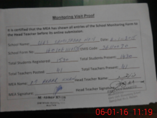 | EMIS Code: 36110070 | Name of School: GGES SAMIJABAD NO.1 MULTAN | |||