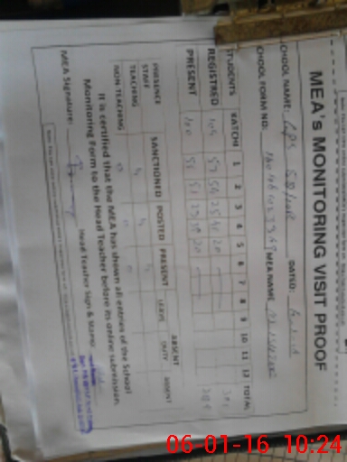 | Certified that this School was Inspected by the Undersigned MEA/DMO Today and the Information Stated Above is as Per Record. | |||||