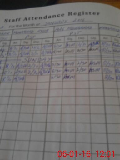 | CNIC | Full Name | Designation | R/C | Absence During Last Calender Month |