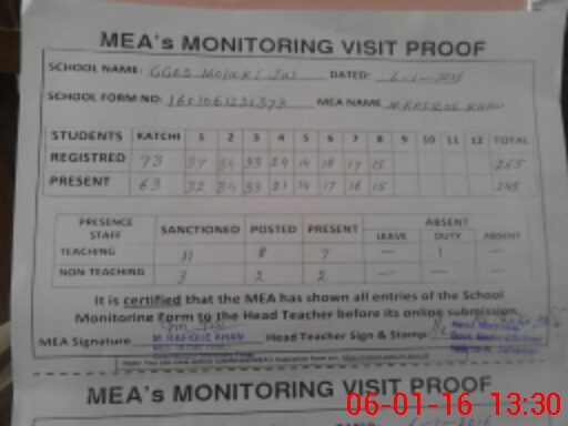 | Certified that this School was Inspected by the Undersigned MEA/DMO Today and the Information Stated Above is as Per Record. | |||||