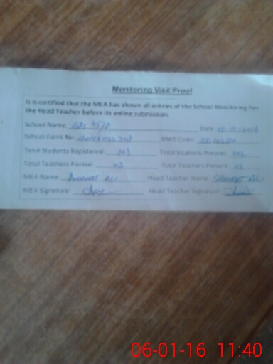 | Attendance Register | Head Teacher | MEA with School | Visit Proof |