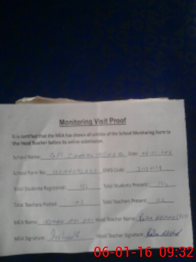 | Attendance Register | Head Teacher | MEA with School | Visit Proof |