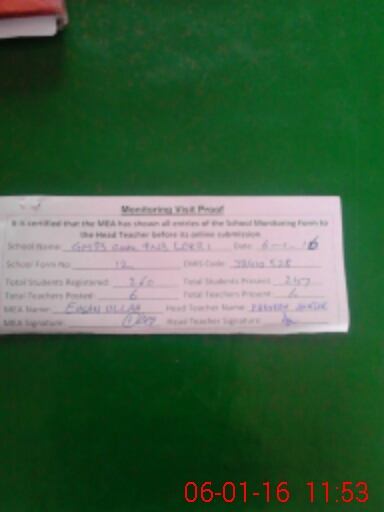 | Certified that this School was Inspected by the Undersigned MEA/DMO Today and the Information Stated Above is as Per Record. | |||||