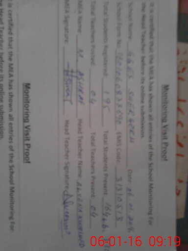 | Certified that this School was Inspected by the Undersigned MEA/DMO Today and the Information Stated Above is as Per Record. | |||||
