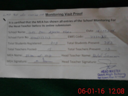 | Certified that this School was Inspected by the Undersigned MEA/DMO Today and the Information Stated Above is as Per Record. | |||||