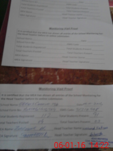 | Attendance Register | Head Teacher | MEA with School | Visit Proof |