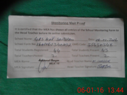 | EMIS Code: 35430348 | Name of School: GPS KOT SAITHAN SKP | |||