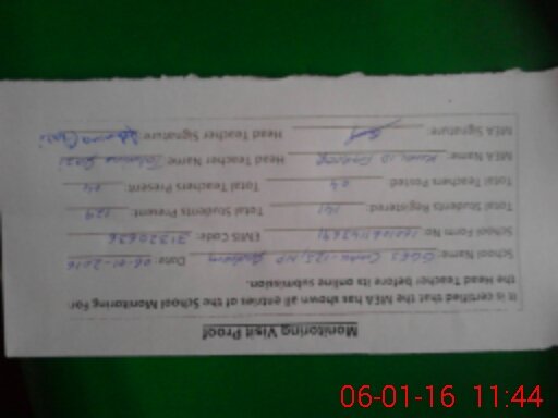 | Attendance Register | Head Teacher | MEA with School | Visit Proof |