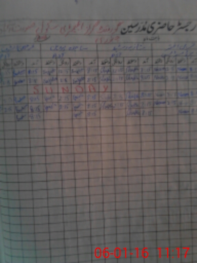 | CNIC | Full Name | Designation | R/C | Absence During Last Calender Month |