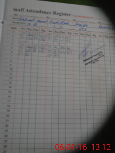 | CNIC | Full Name | Designation | R/C | Absence During Last Calender Month |