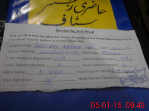 | Certified that this School was Inspected by the Undersigned MEA/DMO Today and the Information Stated Above is as Per Record. | |||||
