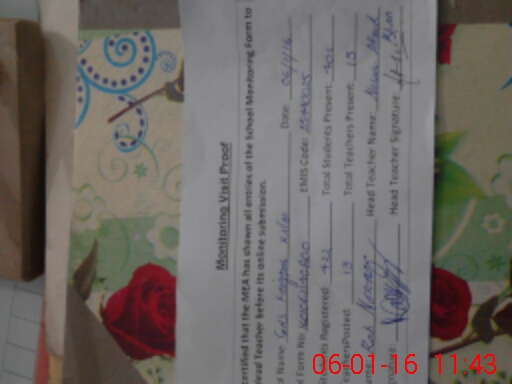 | Attendance Register | Head Teacher | MEA with School | Visit Proof |