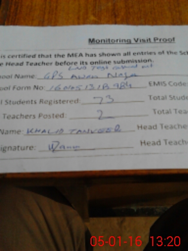 | EMIS Code: 31331065 | Name of School: GPS AWAN NAGAR | |||