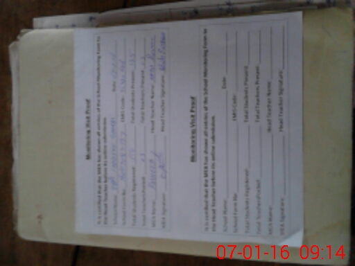 | Attendance Register | Head Teacher | MEA with School | Visit Proof |