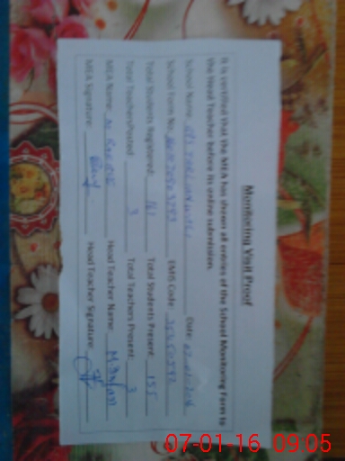 | Certified that this School was Inspected by the Undersigned MEA/DMO Today and the Information Stated Above is as Per Record. | |||||