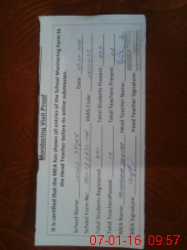 | Attendance Register | Head Teacher | MEA with School | Visit Proof |