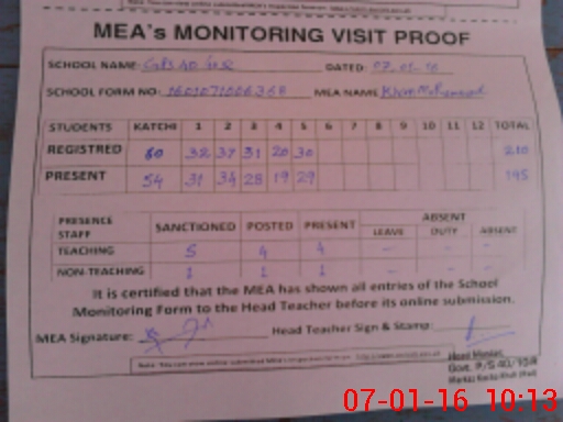 | Certified that this School was Inspected by the Undersigned MEA/DMO Today and the Information Stated Above is as Per Record. | |||||