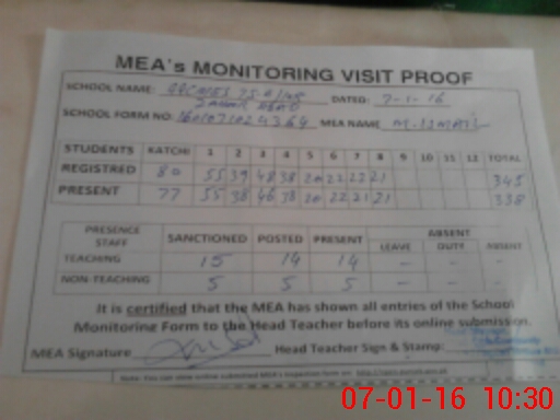 | Certified that this School was Inspected by the Undersigned MEA/DMO Today and the Information Stated Above is as Per Record. | |||||