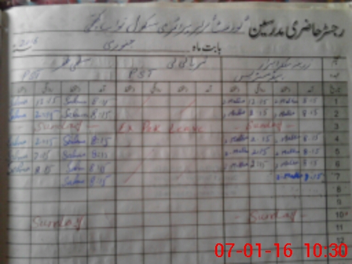 | Name: Uz**** Na**** Designation: (School Headmaster's/Headmistress's) PST Phone/Cell Number: 03**** |