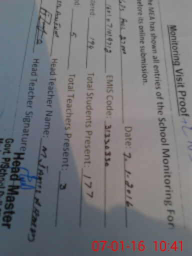 | Certified that this School was Inspected by the Undersigned MEA/DMO Today and the Information Stated Above is as Per Record. | |||||