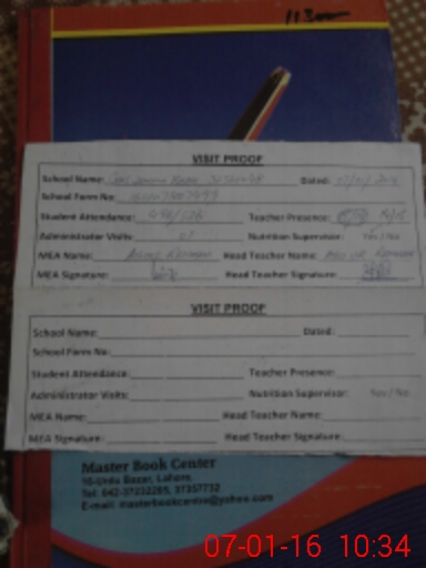| Attendance Register | Head Teacher | MEA with School | Visit Proof |